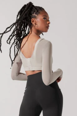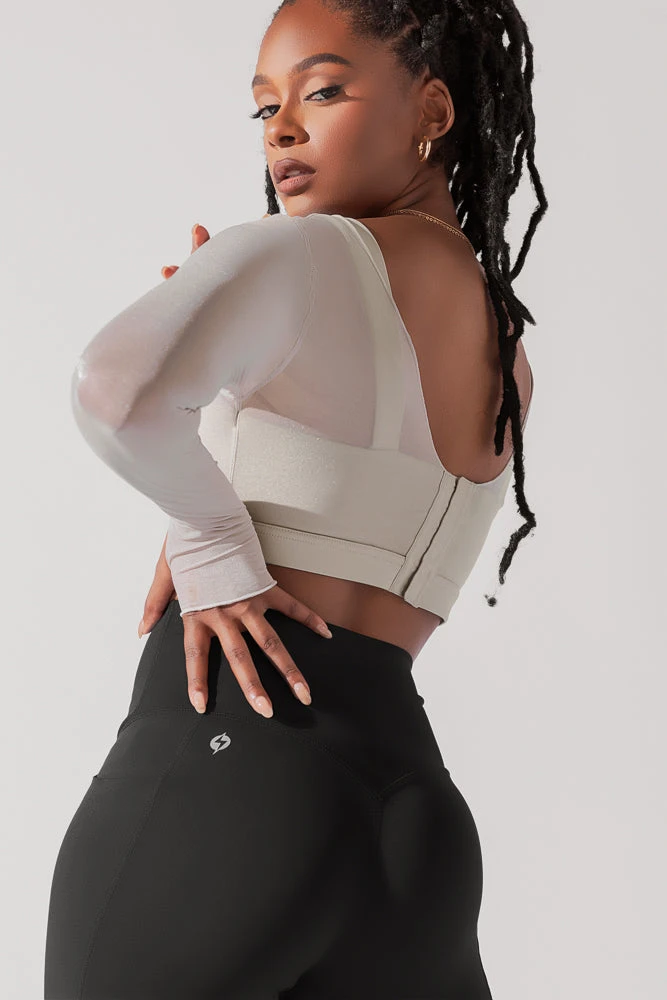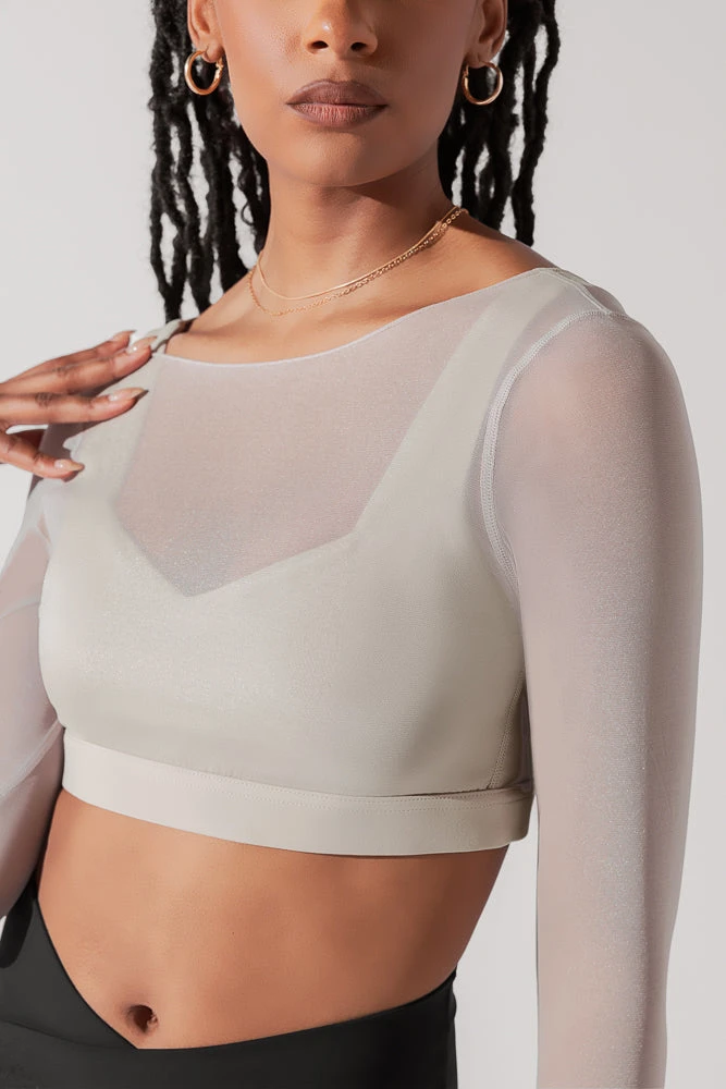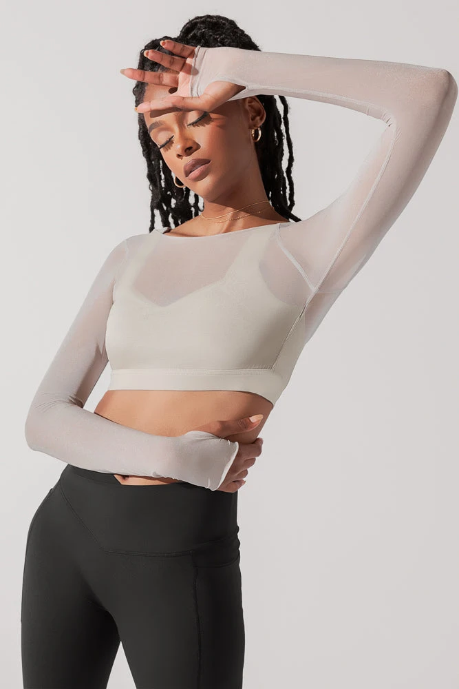 The ethereal long sleeve mesh bra we’d envision a fairytale princess would do Pilates in. And yes, it has thumbholes.